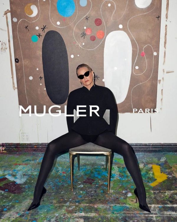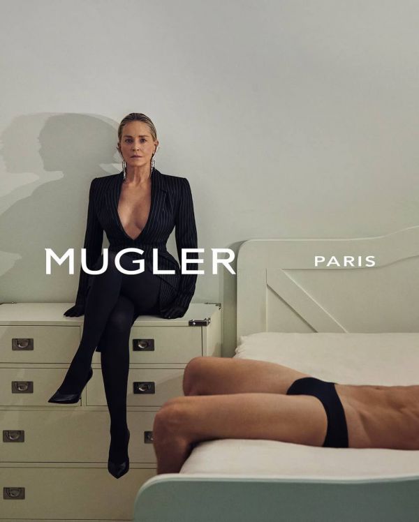 67-летний Стоун Стоун удивил поклонников новыми острыми фотографиями для бренда Mugler. В новом хароне Кампи появился в строгой куртке в тонкой полосе с Глубокий вырез, который ставит на обнаженное тело.